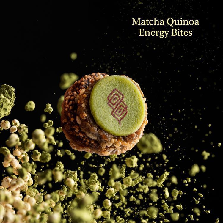 Roasted quinoa, pistachio and figs come together in this subtle bite-sized delight, topped off with an exquisite Japanese matcha disk.